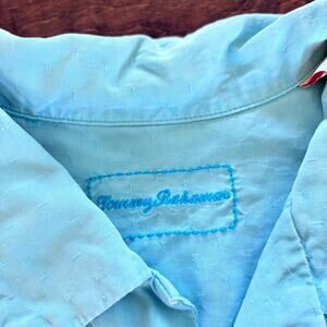 Tommy Bahama Men's XL Light Blue Hawaiian Button Down Shirt 100% Silk