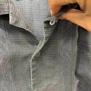 Tommy Bahama Mens XL Loop Collar Hawaiian Blue Embroidered Shirt Camp Silk