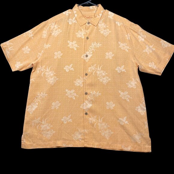 Tommy Bahama Mens XL Original Fit Orange Floral 100% Silk Button up Shirt Summer