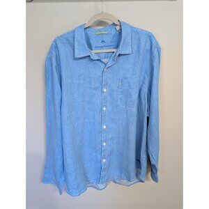 Tommy Bahama Men's XL Sea Glass Breezer Linen Long Sleeve Blue Button-Up Shirt