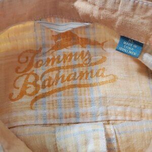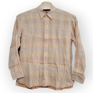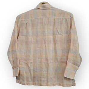 Tommy Bahama Mens XL / X-Large 100% Linen Long Sleeve Plaid Peach Shirt