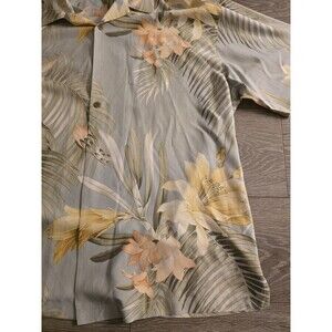 Tommy Bahama Mens XXL Hawaiian Silk Shirt Floral Hibiscus Blue Button Down
