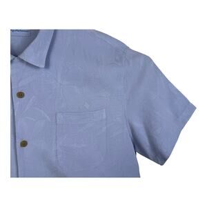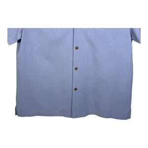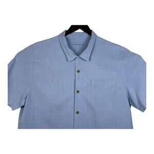 Tommy Bahama Mens XXL Pure Silk Light Blue Textured Floral Hawaiian Camp Shirt