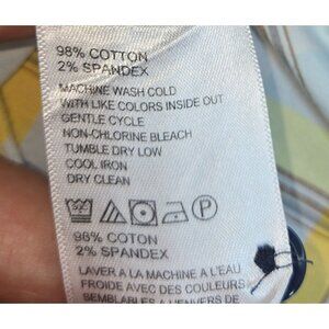 In a tapestry of sunlit yellow and ocean blue, this Tommy Bahama shirt whispers tales of coastal charm. Crafted with a gentle blend of cotton and spandex, it offers comfort on balmy days. The short sleeves invite breezy adventures, while the plaid pattern adds a touch of classic elegance, perfect for leisurely strolls along the shore.