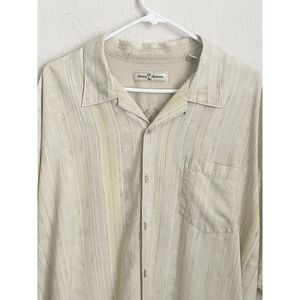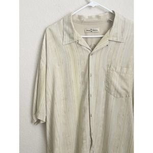 Tommy Bahama Mens Yellow XXL Pineapple Casual Vacation Shirt 100% Silk Short Sleeve Pre-owned. Chest 28" Sleeve 12" Length 27.5" Measurements are approximate and may vary. Show signs of wear, see pics for details.