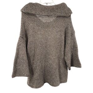 Gray sweater with metallic gold and silver threading make for a unique knit sweater. The wide cowl neck provides additional style. Dress up or down! Excellent preloved condition.