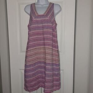 Tommy Bahama Micronesia Linen Pink Stripe Shift Dress Beachy Coastal Boho chic