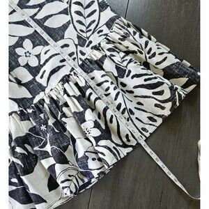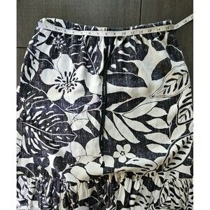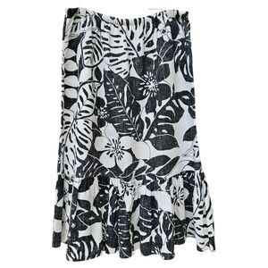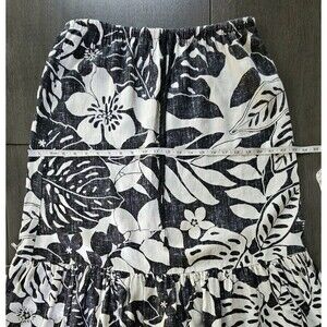 Tommy Bahama Midi Linen Pull On Flounce Skirt Black Off White Floral M Resort