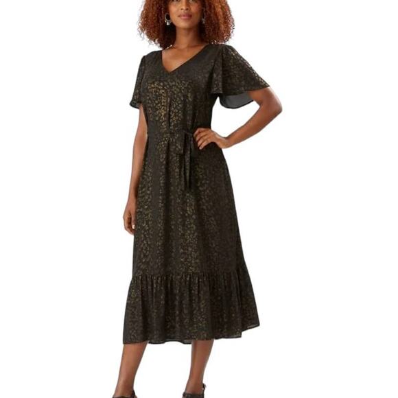 Tommy Bahama NWT Menai Mambo Midi Dress Size XS Black Gold Ruffle Sleeve No Sash