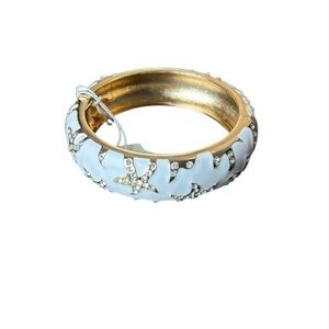 Tommy Bahama NWT Rhinestone and White Enamel Gold Tone Hinge Bracelet