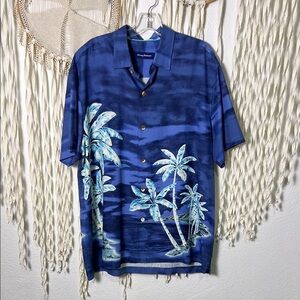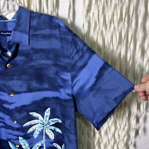 Tommy Bahama NWT Samaira Palms Short Sleeve 100% Silk in Ocean Deep L