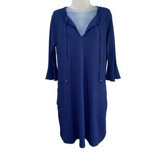 Tommy Bahama Navy Blue 3/4 Sleeve Dress W/ Flared Cuffs & Drawstring Neckline Si