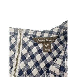 Tommy Bahama Navy Blue Gingham the Great Plaid Linen Shift Dress Size Medium