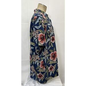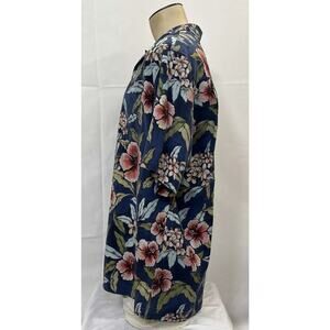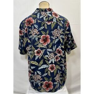 Tommy Bahama Navy Floral Silk Camp Shirt Size XL Original Fit Hawaiian Print FS