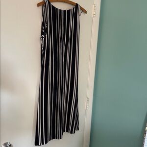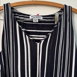 Tommy Bahama sleeveless navy and white striped dress. Ideal for casual wear with sandals on VA-CAY! Slightly flared at waist. Adorable and quick dry. Could even be used as cover-up. It is a dark Navy blue - not the poshmark blue indicated.