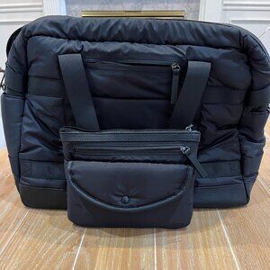 Multiple pockets, this unisex bag is perfect for any traveler. The pass-through strap and soft case make it easy to carry