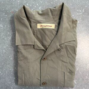 Tommy Bahama Olive Green 100% Silk Short Sleeve Button-Up Shirt - Size XL