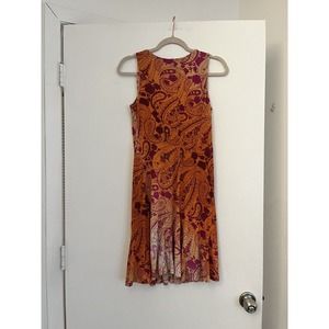 Tommy Bahama Orange Magenta Ombré Paisley V Neck Sleeveless Swing Dress XS