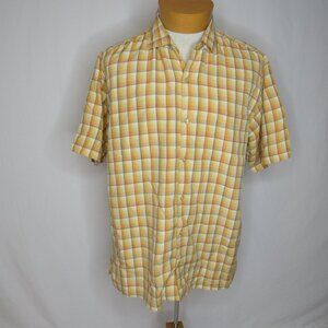 Tommy Bahama Orange Yellow Check Silk Hawaiian Shirt Men's M Medium