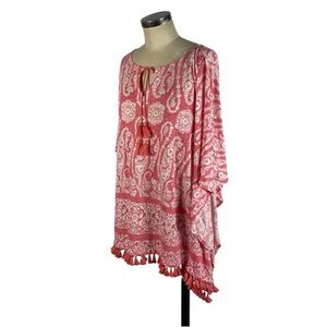 Tommy Bahama Paisley Palace 100% Linen Poncho Top L / XL Tutti Frutti Coral Pink