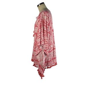 Tommy Bahama Paisley Palace 100% Linen Poncho Top with Tassel Fringe Trim