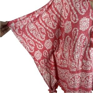 Tommy Bahama Paisley Palace 100% Linen Poncho Top L / XL Tutti Frutti Coral Pink
