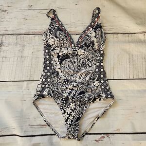Tommy Bahama Paisley Paradise V Neck One Piece Swimsuit Size 10