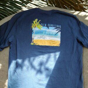 Authentic Tommy Bahama “Palm Conditions” short-sleeve t-shirt in excellent pre-owned condition. Features a laid-back tropical beach and palm tree graphic on the back with subtle logo on the chest. Classic island-style comfort and premium cotton quality Tommy Bahama is known for.