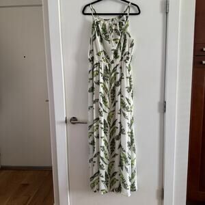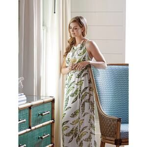 Tommy Bahama Palm Halter Maxi Dress White Tie Neck Elastic Waist Pullover Sz 12