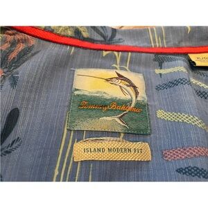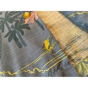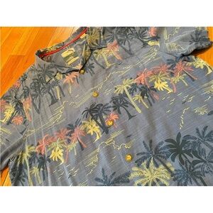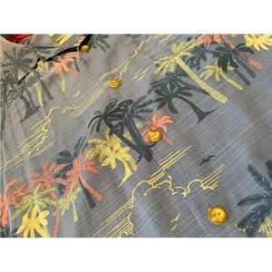 Tommy Bahama Island Modern Fit beach/tropical/Hawaiian shirt, 100% Silk. Blue with multicolor palm tree design. Short sleeved, collared, button down. Men’s size XL. EUC. No rips, holes or stains. Please see photos for item details/dimensions. Some photos may appear different in color due to lighting. Ships from smoke-free home.