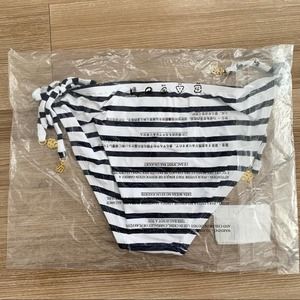 With adjustable side ties and gold-tone charms, these striped triangle bikini bottoms look perfect for spring with colorful botanical embroidery.
