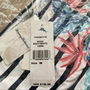 Tommy Bahama Palms of Paradise Embroidered String Bikini Bottoms in Navy/White