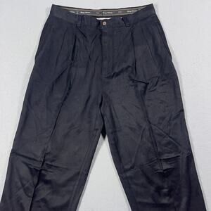 Tommy Bahama Pants Men 34 Silk Black Relax Fit Pleated Dress Hemmed Office
