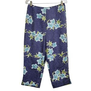 Tommy Bahama Pants Womens 10 Blue Silk Floral Crop Zip Lightweight Beach Boho