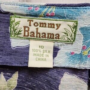 Tommy Bahama Pants Womens 10 Blue Silk Floral Tropical Crop Zip Lightweight Beach Boho Travel Summer Textured Colorful Coastal