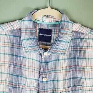 Tommy Bahama Paradigm Blue Plaid Linen Button Short Sleeve Shirt Size Large
