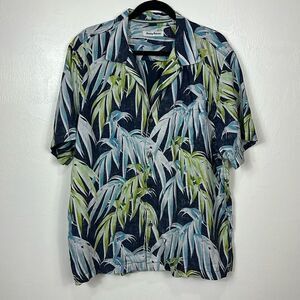 Tommy Bahama Perfect Palmday Camp Linen Shirt In Ocean Deep Size L