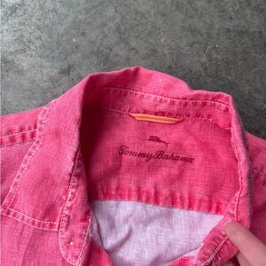 Experience the perfect blend of style and comfort with this vibrant pink casual button-down shirt from Tommy Bahama. Crafted for a relaxed fit, this short-sleeve shirt is ideal for warm weather, offering a classic design that complements any casual occasion.