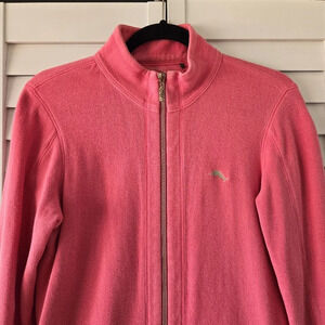 Tommy Bahama Pink Embroidered Back Full Zipped Mock Neck Ribbed Sweater Size S