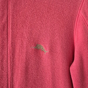 Tommy Bahama Pink Embroidered Back Full Zipped Mock Neck Ribbed Sweater