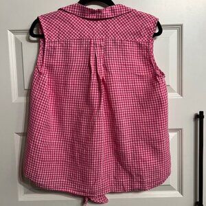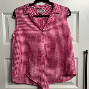 Tommy Bahama Pink Gingham Sleeveless Linen Button-Down – Size M