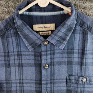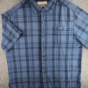 Tommy Bahama Plaid Blue All Silk Original Fit Short Sleeve XL Pocket Adult Men