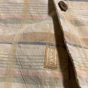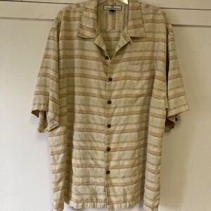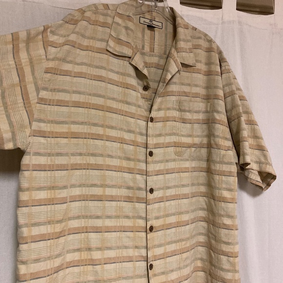 Tommy Bahama Plaid Striped Short Sleeve Button Down Shirt 100% Silk Yellow XL