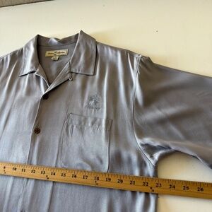 Tommy Bahama Poipu Bay Concrete Gray All Silk Hawaiian Camp Shirt Mens MEDIUM