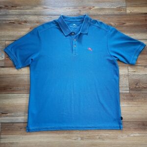 Tommy Bahama Polo Shirt Mens L Blue Pique Short Sleeve