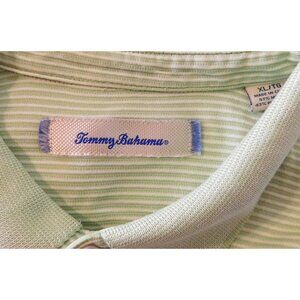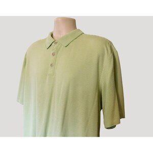 Tommy Bahama Polo Shirt Mens XL Green Striped Lightweight Modal/Polyester Blend