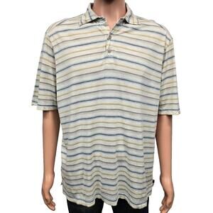 Tommy Bahama Polo Shirt Silk Cotton Men L Multicolor Striped Short Sleeves