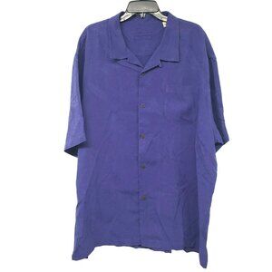 Tommy Bahama Purple Button Front Short Sleeve Shirt Silk Mens 3XL Palm Print