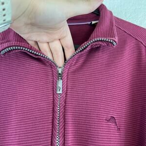 Tommy Bahama Quarter Zip Pullover Men's Large Burgundy Wine Striped Pima Cotton