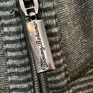 Excellent condition, no signs of wear. It is missing its size tag and fabric content/care tags. When flat and unstretched, garment measures 26" straight across chest and 30" in length from top of shoulder.